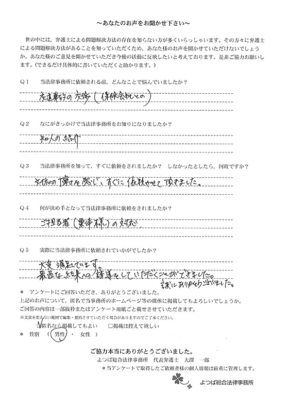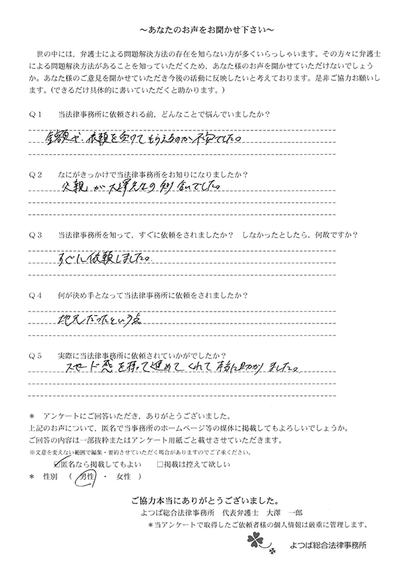 貴事務所に相談に行って本当によかったです。