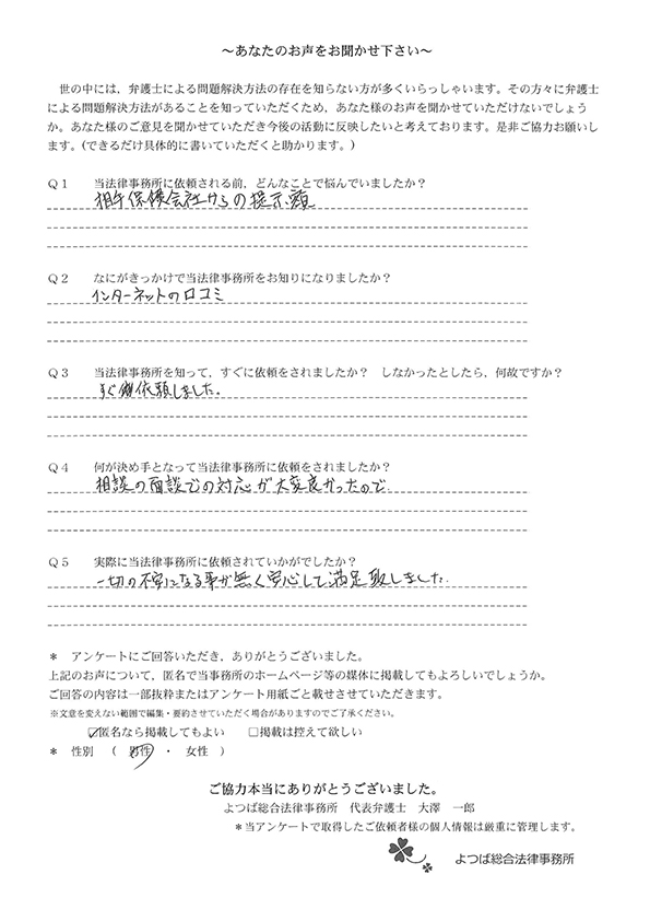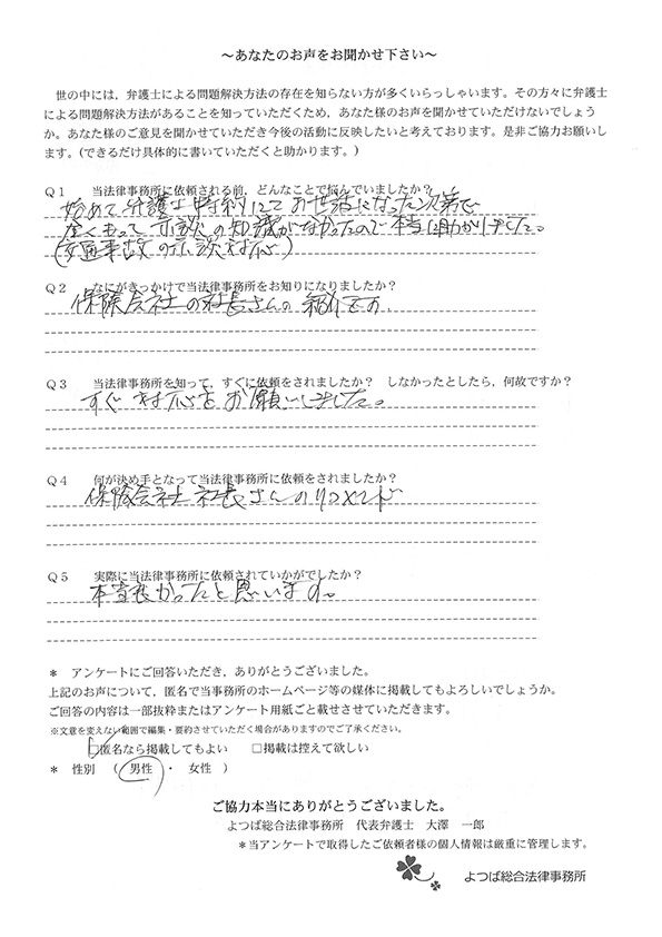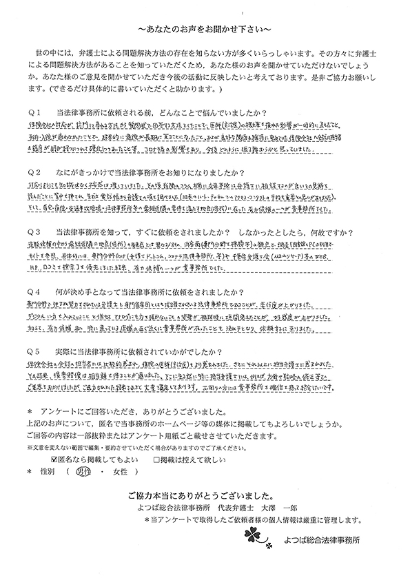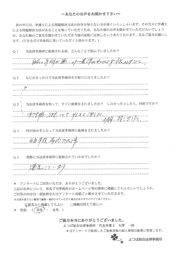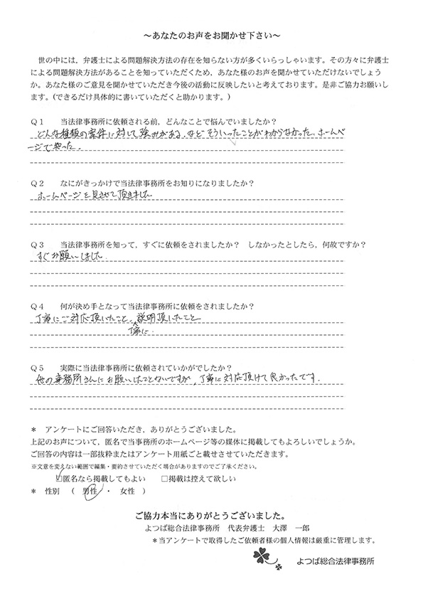 当事務所に相談や依頼をいただいたお客様の声の一部をご紹介します。