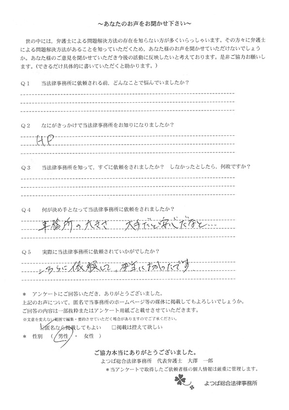 ホームページで事務所を知り、大手で安心だと思い依頼しました。