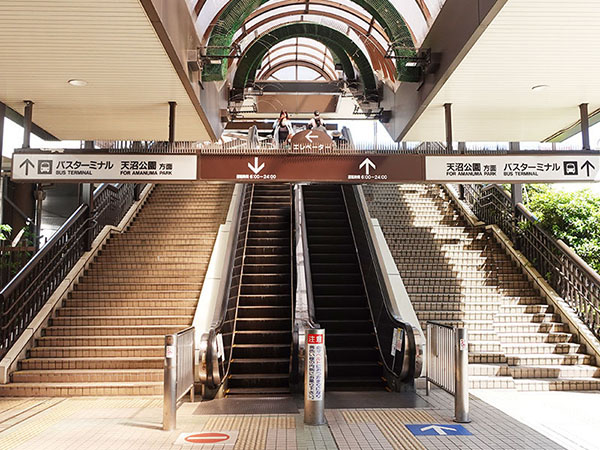 2.北口に出たら階段とエスカレーターがありますので、上ります。
