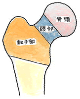 大腿骨近位部の骨折は、大きく3つに分けられます。大腿骨頸部骨折のほか、大腿骨転子部骨折、転子部よりも下が折れる大腿骨転子下骨折の3つに分類されています。