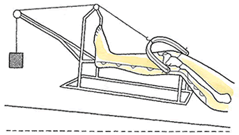 これにより、大腿骨を臼蓋底から引っ張りだし、臼蓋底骨折部が自然に癒合するのを待ちます。関節面が正しく整復されたものであれば、7週間~9週間牽引して骨癒合を待ちます。