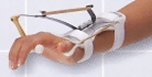 トーマス型装具ゴムやバネで手指・手関節の伸展を補助します