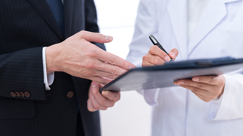 回答書を作成していただく前の段階で弁護士が医師と面談を行うこともあります。質問の意味や回答していただきたい理由等を医師に説明し、より適切な回答書を出していただけるようにする事案もあります。